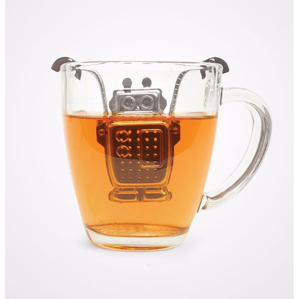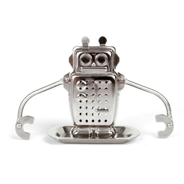 Dodatni opis: Simpatičan infuzer u obliku robota napravljen od nerđajućeg čelika i jednostavan za rukovanje. Jednostavno napunite robota omiljenom mešavinom čaja zatvorite ga i zakačite za šolju sa vrelom vodom. Robot ima ruke koje su podesive tako da se može zakačiti za bilo koju šolju. Nakon par minuta izvadite infuzer iz šolje i odložite ga na tacnu koju dobijate uz njega. Beskrajno simpatično i praktično rešenje.