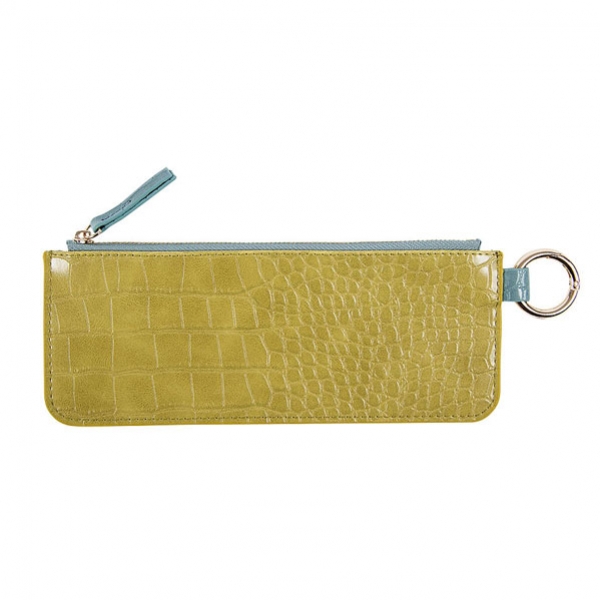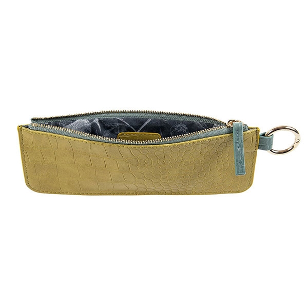 Dodatni opis: Futrola maslinaste boje sa svojim elegantnim krokodilskim dizajnom ne samo da je fina kao pernica za vaše olovke i pisaći pribor već i kao mala kozmetička torbica za ruževe senke za oči i nakit. Materijal sa spoljašnjim izgledom veganske kože i crno-bela postava savršeno štite vaše osnovne stvari. Posebno pogodnost je zlatna kopča pomoću koje pernicu-neseser možete pričvrstiti za torbu.