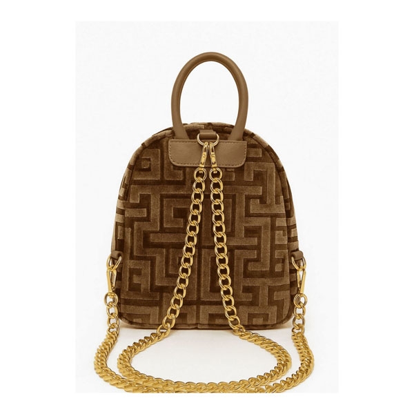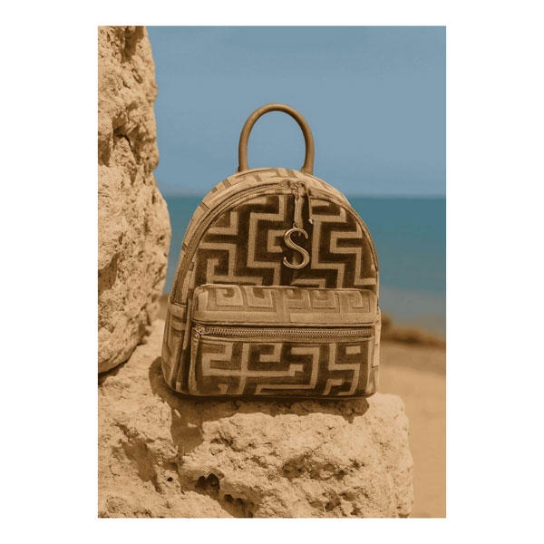 Dodatni opis: Podignite svoj svakodnevni stil uz mini ranac od somota Sorena luksuzni dodatak koji besprekorno spaja eleganciju sa funkcionalnošću. Izrađen od plišanog somota i ukrašen geometrijskim uzorkom grčkog ključa ovaj ranac je dizajniran da privuče pažnju. Zlatni metalni privezak u obliku slova „S“ dvostruko zatvaranje sa patentnim zatvaračem zlatni lanac za rame. Unutrašnjost: Potpuno obložena sa unutrašnjim džepom. Zatvaranje: Gornji patentni zatvarač. Sivo-bronzana boja sa metalnim akcentima. Savršen za svakodnevno nošenje ovaj upečatljiv komad dodaje sofisticiran dodir svakoj odeći.